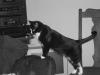 | Black and White pic of Black and White Cat | She has White socks | A cat looking up hopefully | Mum and her puppies | Time for food |